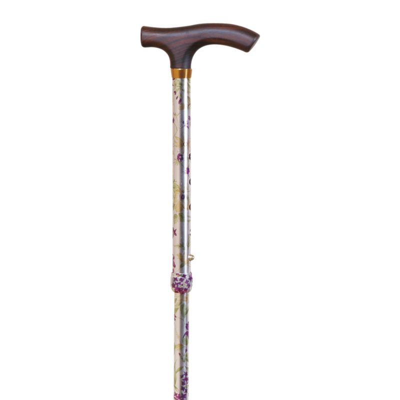 Indicações: Facilita a marcha aumentando a estabilidade diminuindo o cansaço ao caminhar. Instruções: Verificar o estado da ponteira com regularidade. O desgaste da ponteira aumenta o risco de queda e a bengala perde aderência, estabilidade. Características: Tubo em aluminio estampado com flores e punho em madeira; Comprimento – 84-94cm; Bengala extensivel e dobrável em 4 partes; Inclui bolsa transparente; Peso máximo do utilizador 100Kgs; Diâmetro da Ponteiras – 16mm (Referencia 0301825)